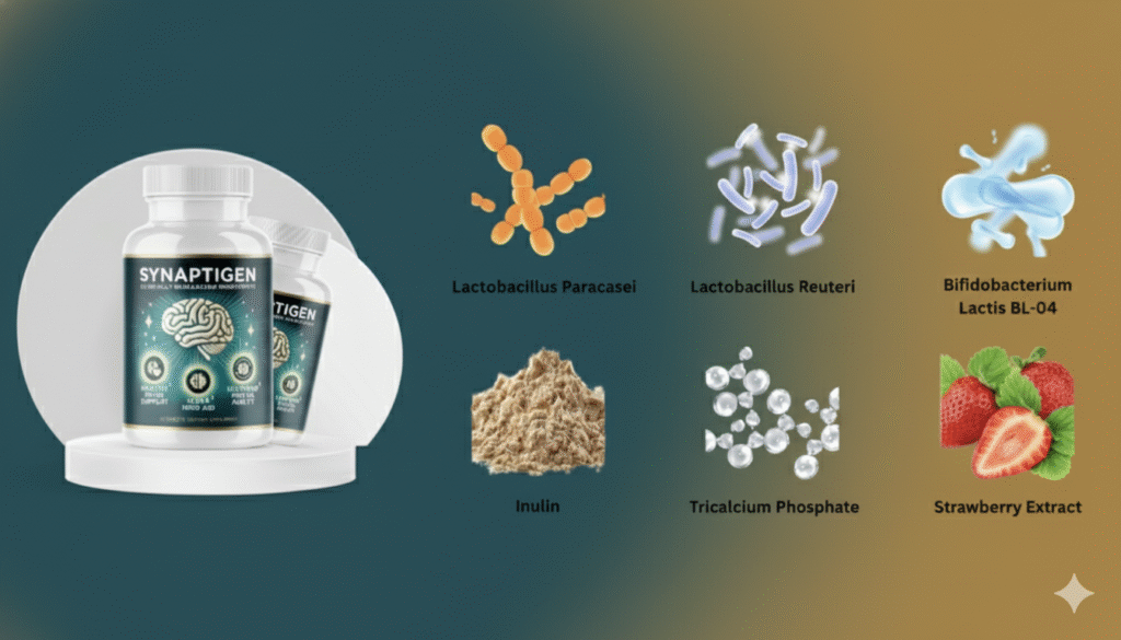 Synaptigen works by targeting the gut-brain axis, the biological pathway that connects the digestive system with the central nervous system. Scientific studies have shown that gut health directly influences mood, memory, and focus. The supplement uses specific probiotic strains to restore intestinal balance and reduce inflammation that can interfere with cognitive performance.